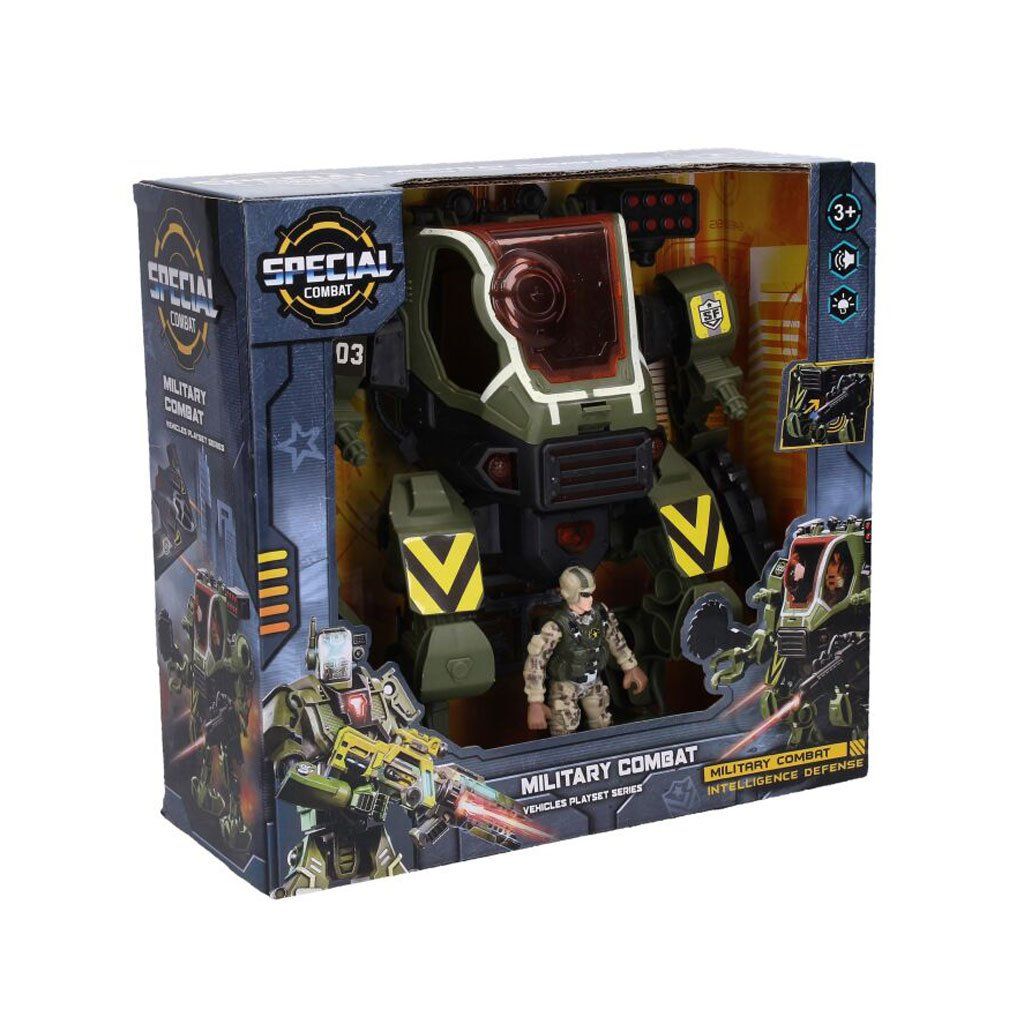 Impozantný bojový mecha robot s výškou 26 cm s realistickými svetelnými a zvukovými efektmi prináša do hry dynamickú akciu a autentický vojenský zážitok. Robustná konštrukcia a detailné spracovanie zaručujú atraktívny vzhľad aj dlhú životnosť, vďaka čomu je ideálnou voľbou pre zberateľov aj fanúšikov akčných modelov.