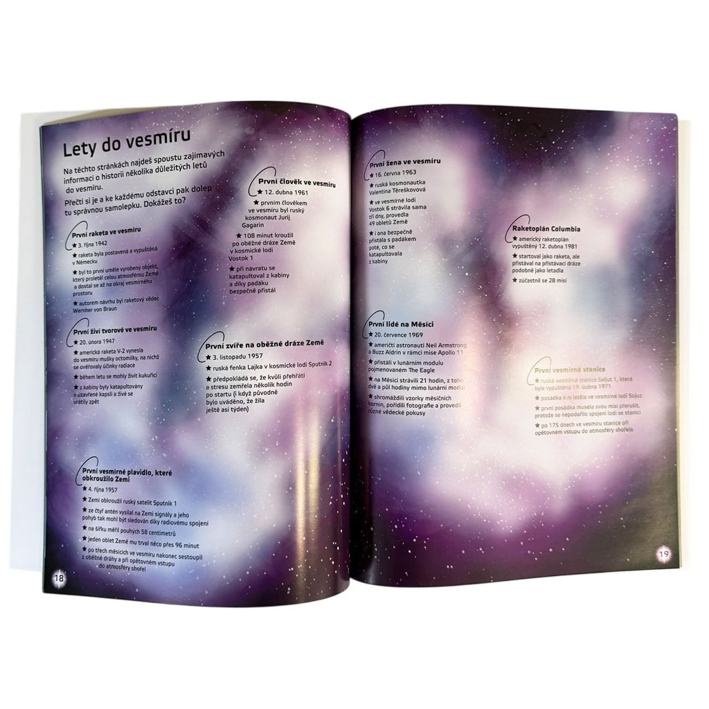 Titul obsahuje 24 stran o vesmíru a více než 250 barevných samolepek k dolepení a ozdobení.