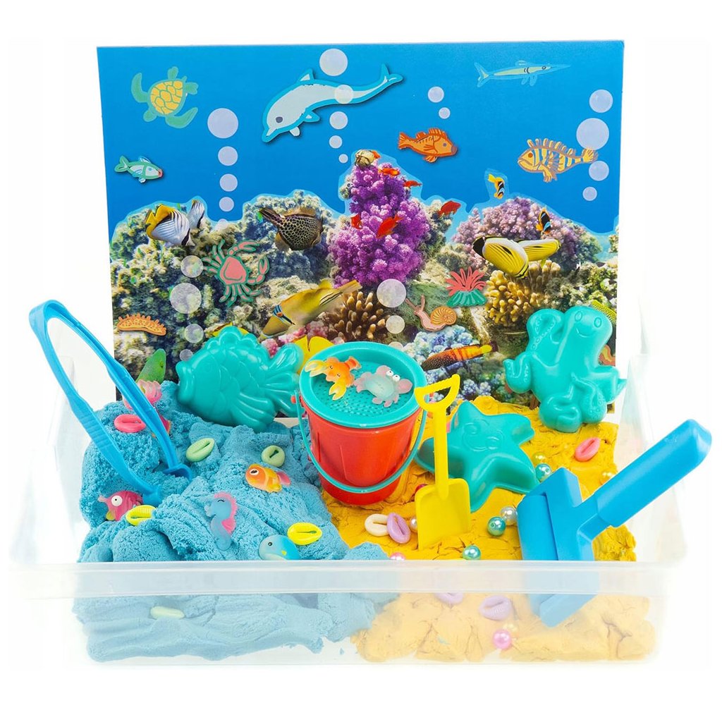 Súprava obsahuje 600 gramov kúzelných pieskov, ktoré sa skvele tvarujú, podobne ako sliz. V sade nechýbajú ani doplnky a ozdoby na vytvorenie krásnych kreatívnych diel, ktoré môžu deti tvoriť podľa vlastnej fantázie s morskými tvormi.