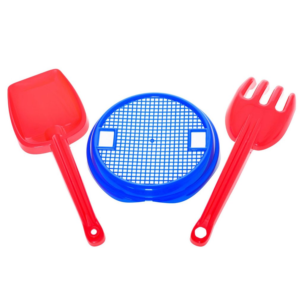 1. Kompletná sada na piesok: Sada obsahuje všetko, čo vaše dieťa potrebuje pre neobmedzenú zábavu - vedierko, sitko, dve lopatky, hrabličky, kanvičku a tri bábovky.