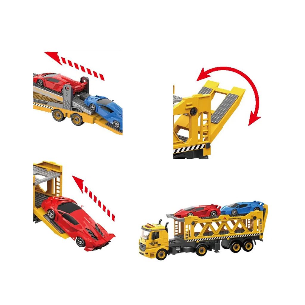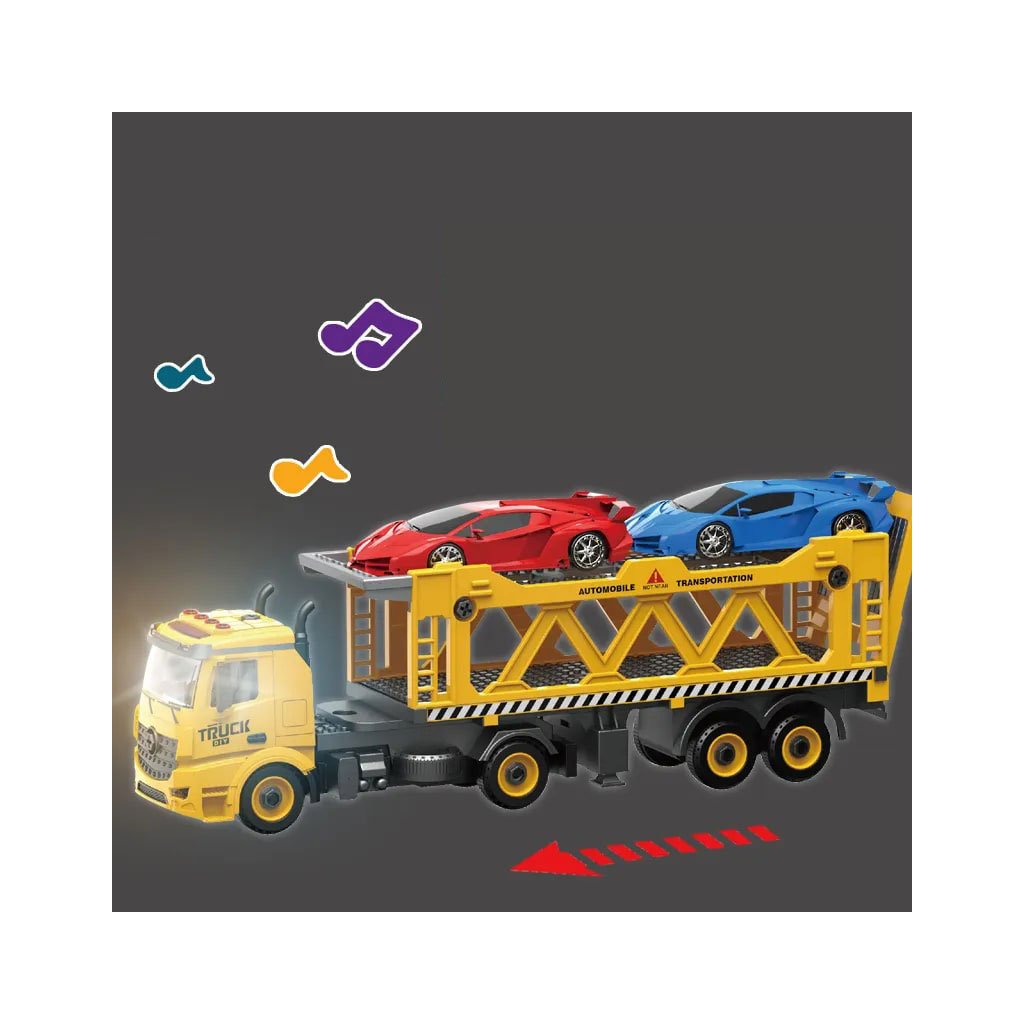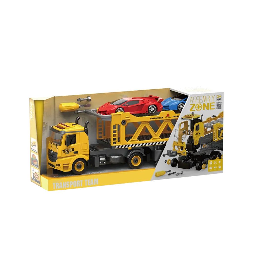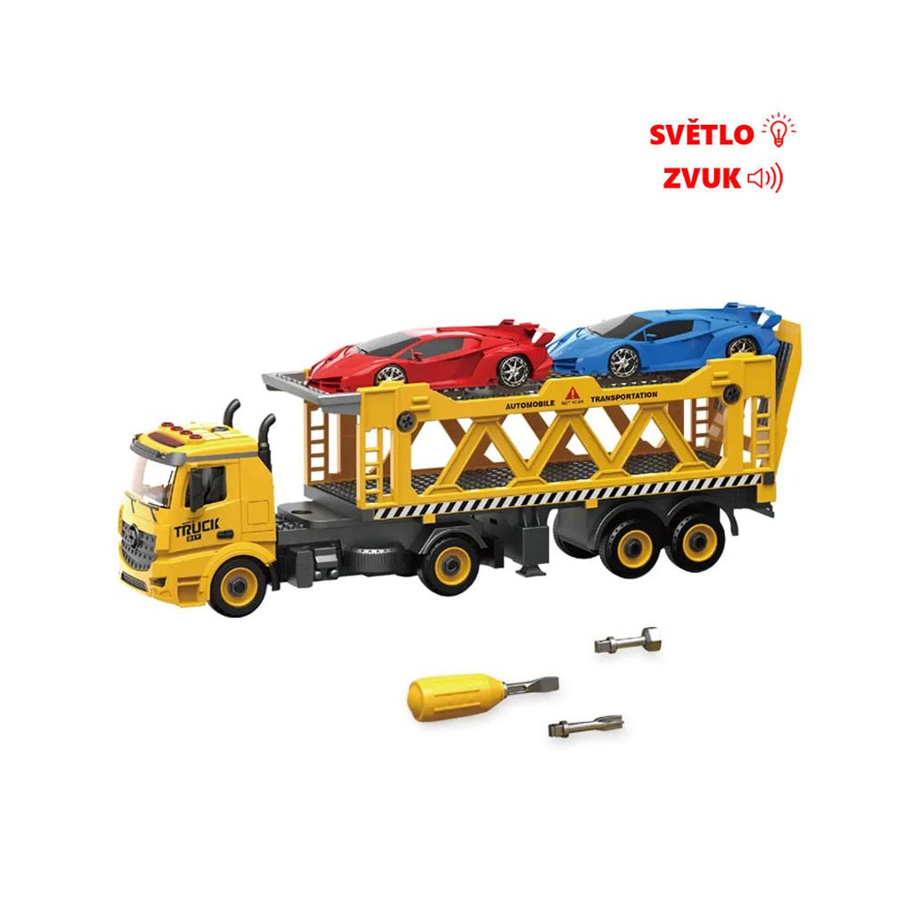Skrutkovací ťahač so svetlom a zvukom. Za pomocou priloženého detského skrutkovača je možné auto rozložiť a zložiť. Po stlačení tlačidla na streche svieti majáky a auto vydáva zvuky. Na návese nájdete dve autíčka. Ideálne pre rozvoj kreatívneho myslenia. Veľkosť auta je 45 centimetrov. Svetlo a zvuk fungujú po vložení 3 x 1.5V LR44 batérií, ktoré sú súčasťou balenia.