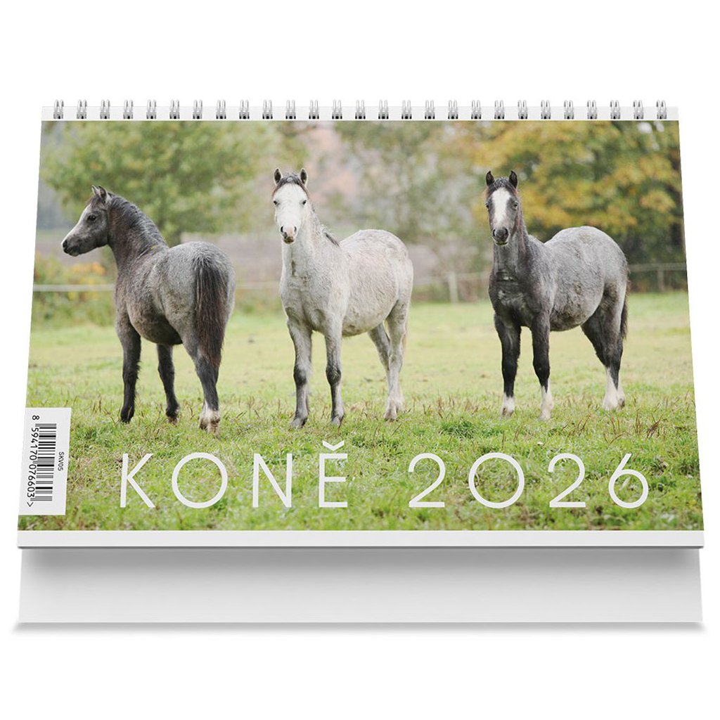 Obdivujte krásu koní po celý rok 2026 s tímto stolním týdenním kalendářem. Každý týden vás potěší nová fotografie těchto ušlechtilých zvířat – od koní běžících zasněženou krajinou po trojici koní na zelené louce. Přehledné týdenní kalendárium obsahuje česká jména, státní svátky a prostor pro poznámky. Nechybí ani měsíční náhledy. Kroužková vazba umožňuje snadné otáčení listů.