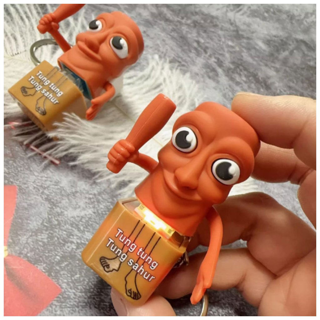 Vneste hravosť aj trochu príbehu k svojim kľúčom alebo batohu vďaka tomuto originálnemu prívesku. Prívesok po stlačení hrá melódie TungTungTung Sahur a svieti. Úžasný prívesok na kľúče je veľký 6 centimetrov a má k sebe na pripnutie karabínku.