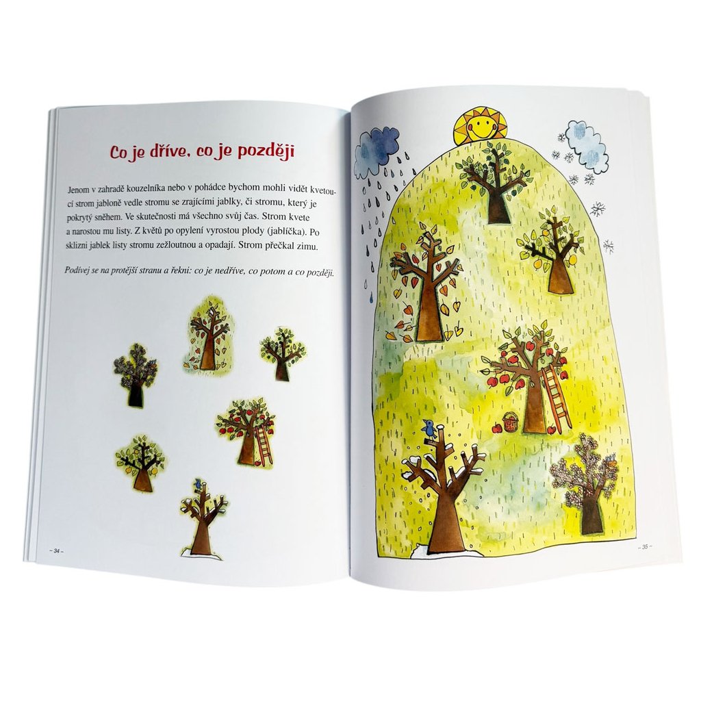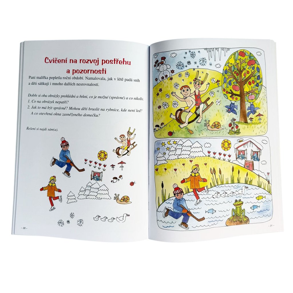 Publikace formátu A4 obsahuje zábavné úkoly, které cvičí mimo jiné postřeh, pozornost, vedou k porovnávání velikostí, rozlišování barev apod. Snahou je, aby si dítě pěstovalo určitý zvyk soustředěné činnosti.