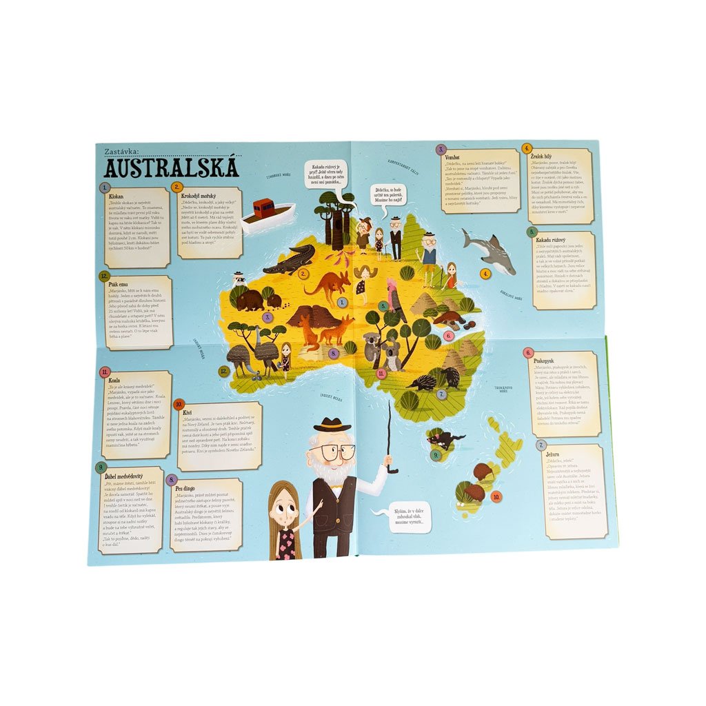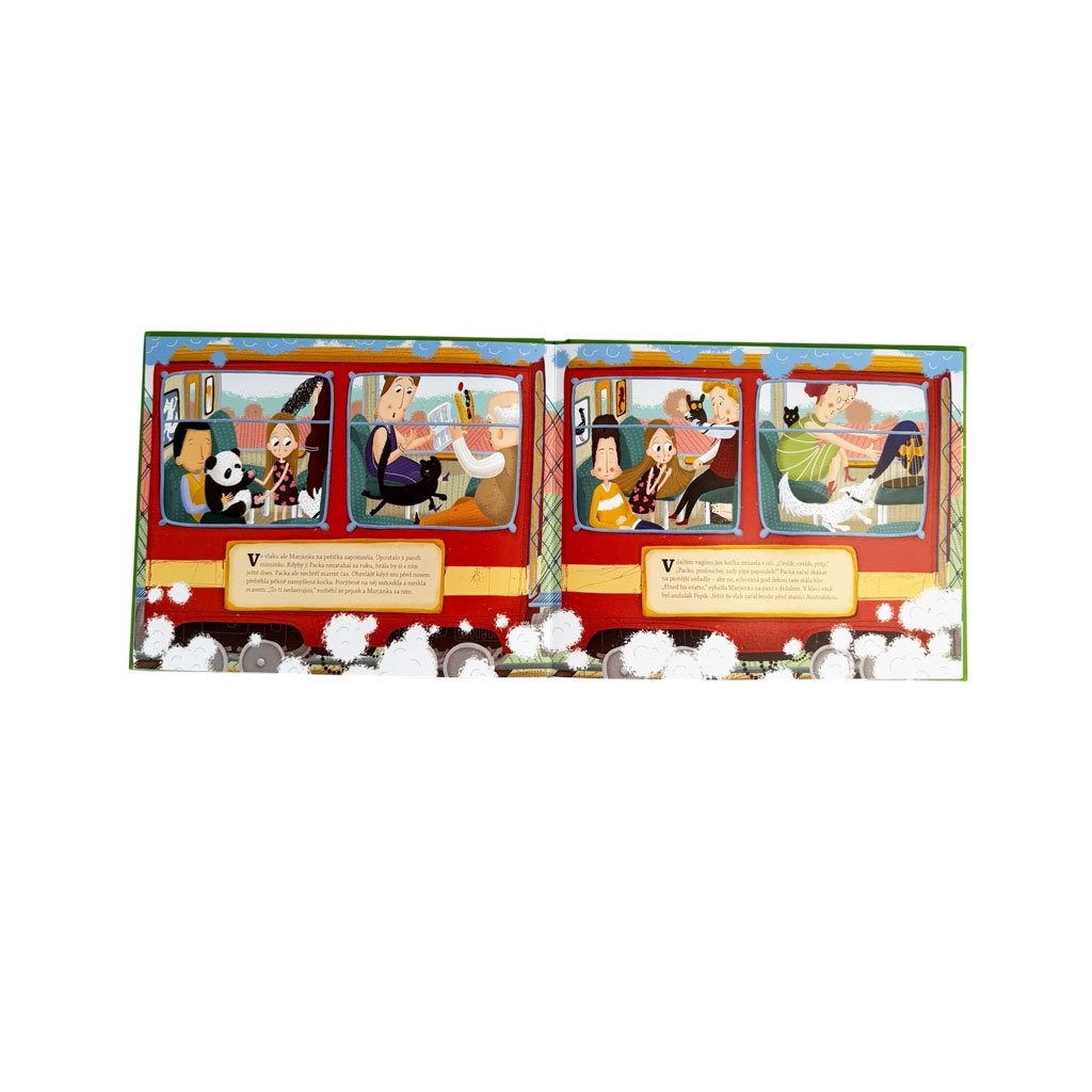 Není nad to, když tě vezme dědeček na cestu kolem světa – za zvířátky. Tak jako holčičku Marjánku. Stačí nasednout do vlaku a výlet, na kterém poznáš žirafy, opice, tygry, tučňáky, štíry, zebry, lední medvědy, soby, žraloky i delfíny, může začít. A co teprve, když zjistíš, že je ve vlaku pašerák a pašuje vzácného papouška. Hned se můžeš přidat k detektivovi a spolu s ním po tom zlosynovi pátrat.