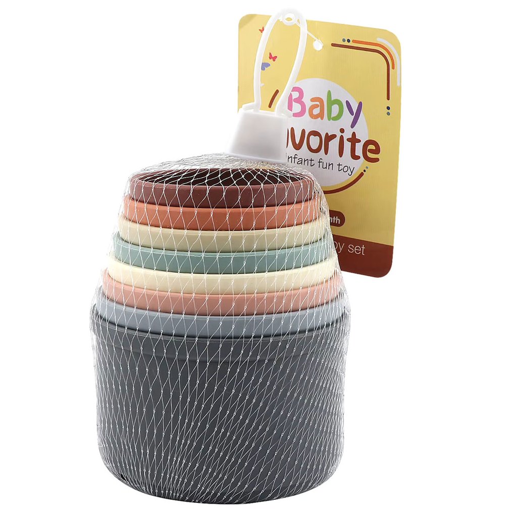 Parádna vkladačka pyramída. Obsahuje celkom osem téglikov v rôznych farbách.