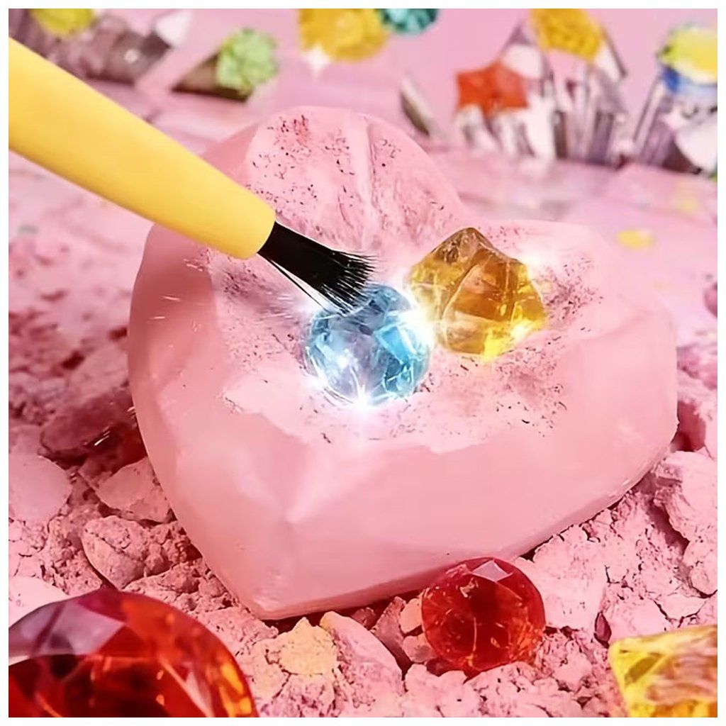Vydajte sa na napínavú výpravu za pokladom! Pomocou priložených nástrojov sa malý prieskumník postupne „prekope“ sadrovým srdcom, až vo vnútri objaví ukrytý trblietavý diamant. Každé odhalenie je plné očakávania a radosti z nájdeného pokladu.
