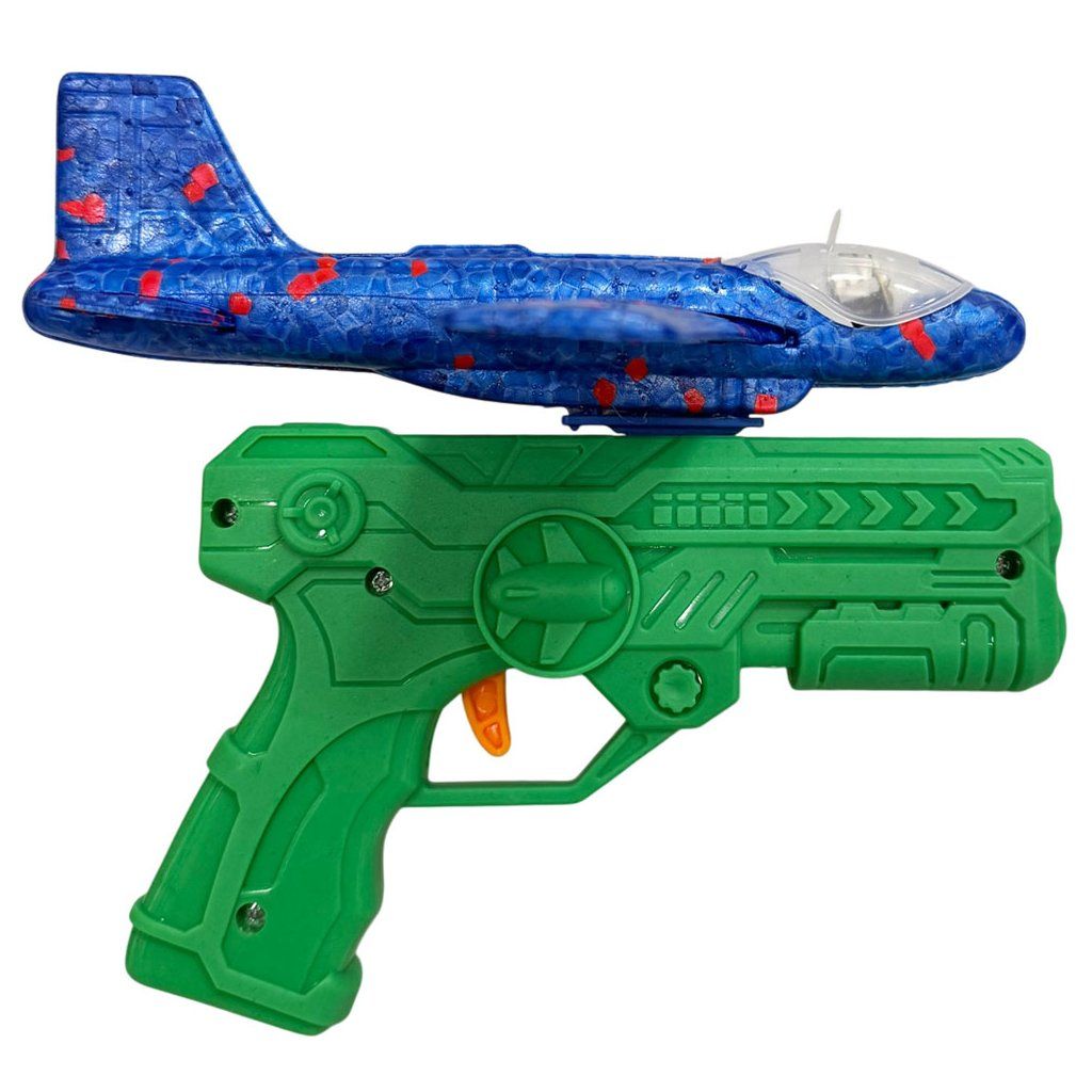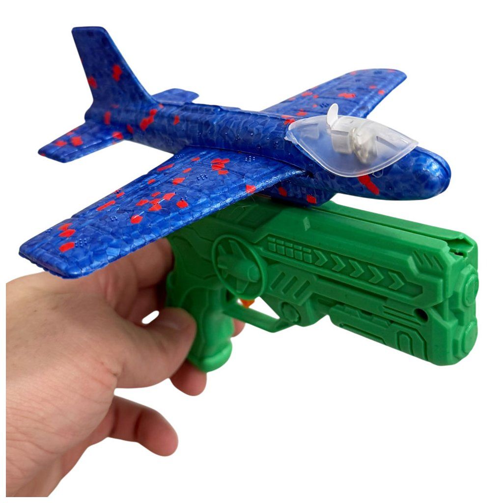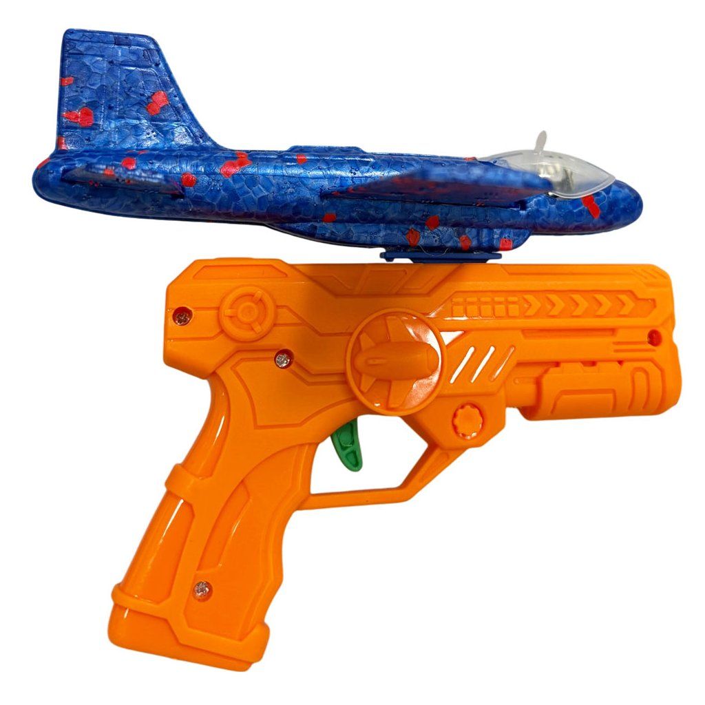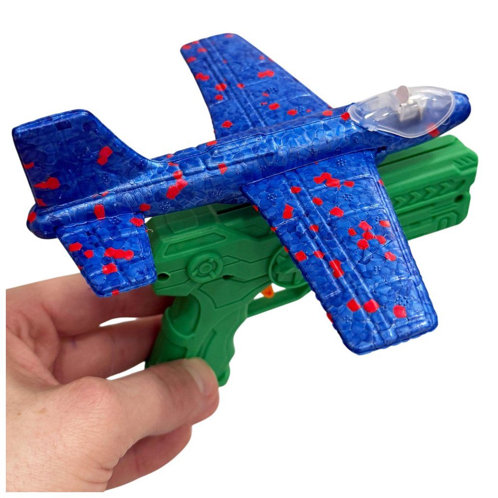 K tomu lietadielku dostaneš aj takú pištoľ. Do tej pištole sa lietadielko vloží a potom ho z nej môžeš vystreliť! Stačí len natiahnuť a stlačiť spúšť a lietadielko poletí vysoko do vzduchu.
